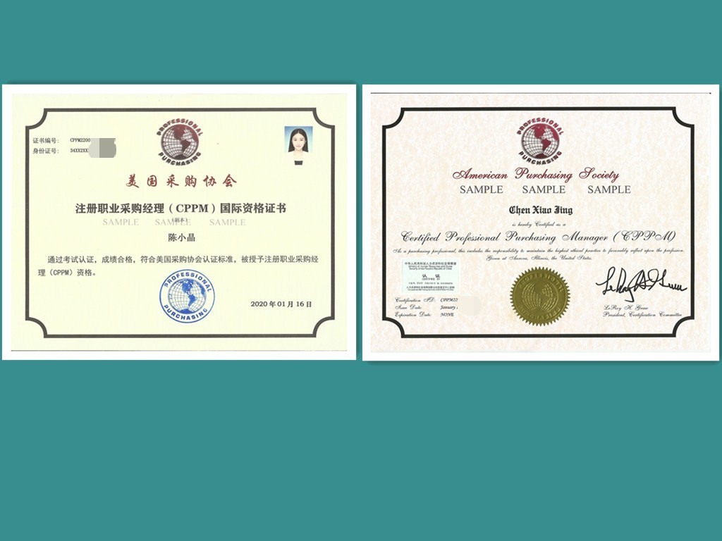 知识经济背景下,中国企业核心竞争力的下一次提升,在于国际化采购和供应链管理的发展。采购市场国际化,采购人才国际化是大势所趋,中国采购业急需深谙国际规则、又具本土操作实务的采购高级管理人才。2005年4月,人力资源和社会保障部批准注册美国采购协会(APS)注册职业采购经理认证CPPM项目《注册号为劳引字[2005]001号》,CPPM证书被纳入国家职业资格证书统一管理体系。其目的是发展和贯彻采购工作中应遵循的准则,提高采购效率和效力,使中国企业采购管理与国际接轨,助中国采购金领人才成长。